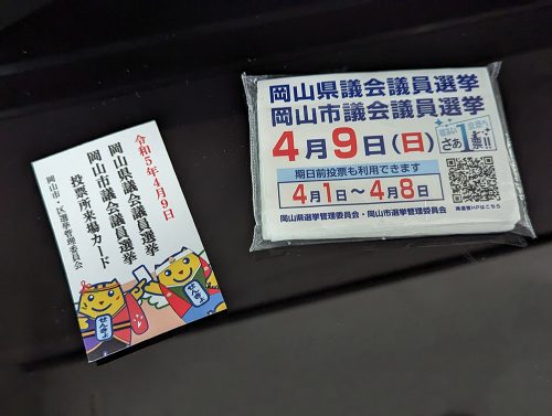 岡山市議会議員・県議会議員選挙9日が選挙当日です。