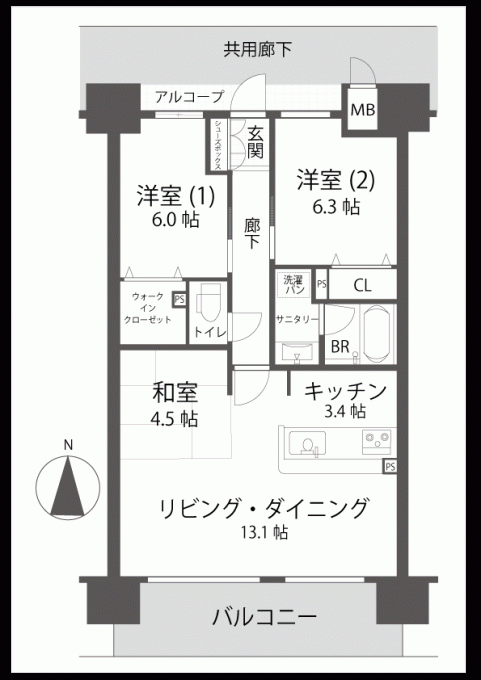 今回のお部屋は7階の南向き、3LDKタイプです。