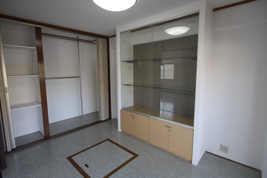 作り付けガラスケース等、収納スペースが多いのも魅力の一つです。