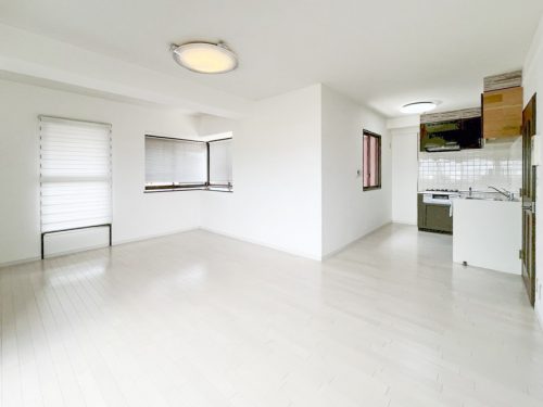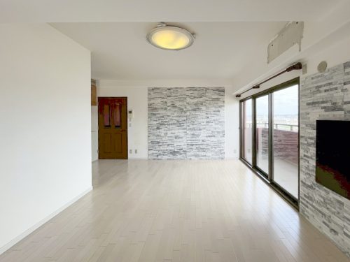 L字のLDKをぐるりと囲むようにバルコニーが設けられており、明るく開放感があります。遮るものが無く、開放感のある眺望が楽しめます!