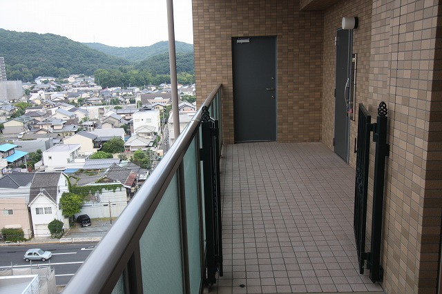 玄関前は専用ポーチ付きで、ここに外用のお荷物なども置くことができますし、奥の扉からバルコニーへとつながっております