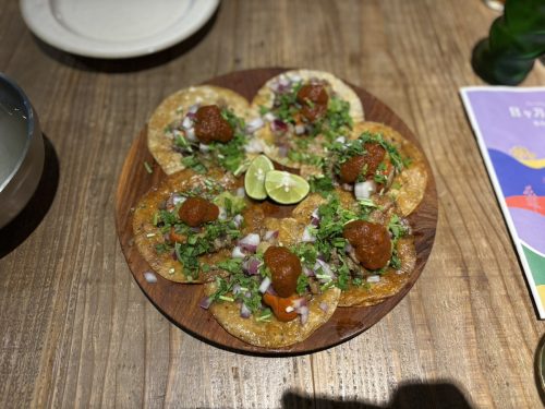 店員さんおススメの一口タコスはスパイスが聞いていてビールとの相性最高でした!!