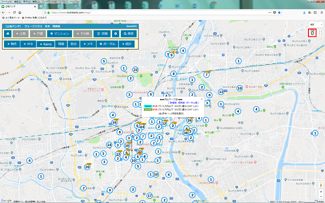 岡山市内と書きましたが全国どこの地域も地図上で物件情報を見ることが出来る優れものです。