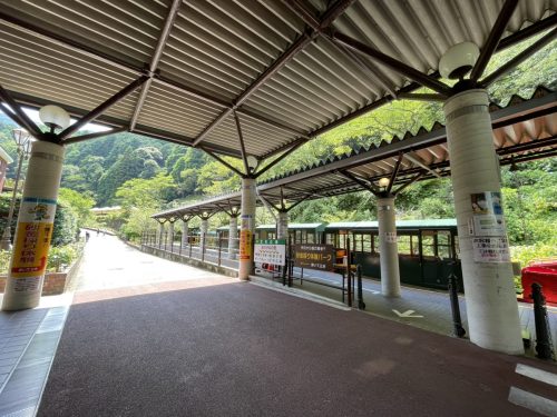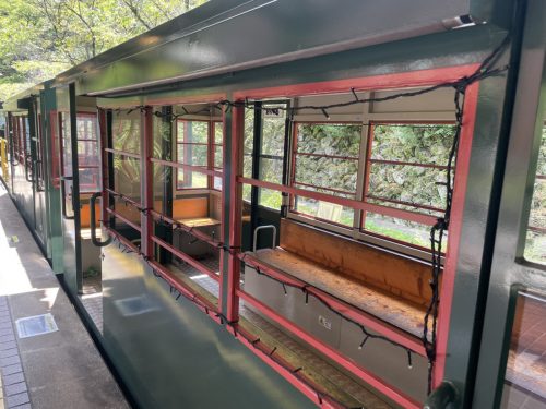 まずは駅からレトロな雰囲気のトロッコ列車に乗り込みます。