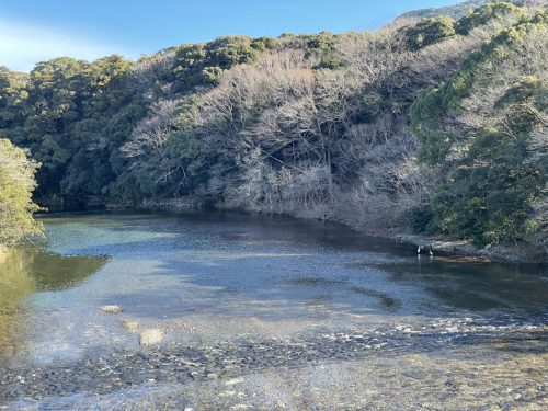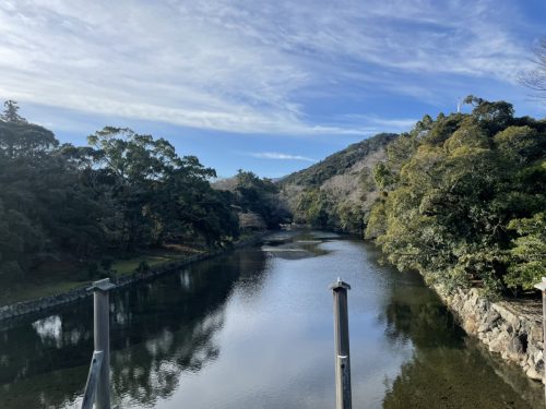 橋の上から眺めた五十鈴川。